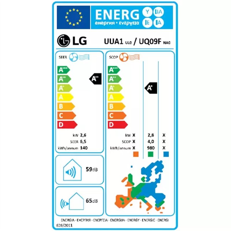 Energieklasse: A++ (koelen) / A+ (verwarmen)*